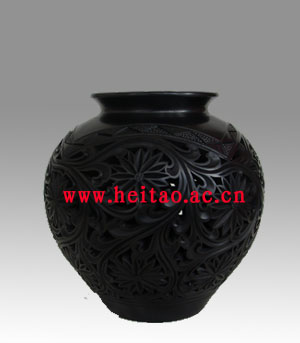 黑陶团花罐-正宗龙山黑陶-黑陶工艺品-济南特产