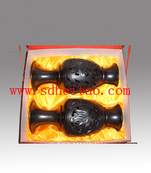 黑陶两件套-陶瓷工艺品-山东特色商务礼品-龙山黑陶