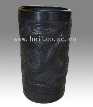 名  称:浅浮雕龙凤卷筒-黑陶-黑陶价格-黑陶工艺品