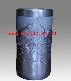 名  称:金鱼笔筒-山东外事礼品-济南特产-黑陶