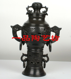 简  介: 设计内涵:薰乃古代宫廷燃香用器,作品通过艺术的表现手法使其更具观赏性,今置室内可以赏用两便。规格:42*32