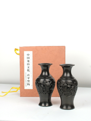 黑陶选用得天独厚的黄河古道河床下纯净而细腻的红胶土为原料,经手工淘洗、拉坯、晾晒、修整、压光、绘画、雕刻等工艺,最后采用独特的“封窑熏烟渗碳”方法烧制而成。它具有黑如漆、明如镜、硬如瓷、声如磬四大特色,其制作之精致、造型之优美,更为世人所倾倒,被中外史学家称为“原始文化的瑰宝”。 黑陶经历了岁月与呵护,其愈黑、愈亮愈显珍贵。黑色使人感觉稳重、神秘、高贵、大方、典雅、内涵深沉。黑陶的壮美与崇高让人们感觉到心灵震撼,宁静而致远。 黑陶作为陶类中的极品,以土与火的艺术诠释着古老文明,演绎着力与美的结晶。随着人们文化素质的不断提高,人际、单位、国家之间交往的不断增强,这支民族工艺的奇葩,正为越来越多的人们所认知,将引起一场工艺礼品的革命,成为外事、会议、商务、家居礼品中的首选。