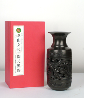 黑陶团花罐-正宗龙山黑陶-黑陶工艺品-济南特产