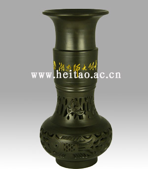 黑陶在烧制时采用了封窑烟董的渗炭方法,器表呈现出深黑色光泽。它表面磨光,朴素无华,纹饰仅有少数弦纹、划纹或镂孔。黑、薄、光、纽为黑陶的四大特点。其中有一种薄胎黑陶,漆黑乌亮,薄如蛋壳,称蛋壳陶,代表看这一类型陶器的杰出成就。