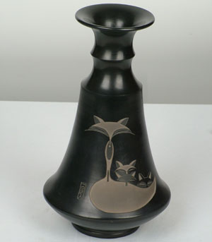 黑陶,不知道她出自于古艺术家热情洋溢的创作,还是出自于皮鞭棍棒之下。然而,她承载着人类一段光辉历史,穿越了5000年,为我们留下无尽的追忆和思索。 黑陶,诞生于我国新石器时代晚期,距今已四千多年,是黄河中下游原始文化的杰作。1928年,我国著名考古学者吴金鼎,在山东省章丘县龙山镇的考古发掘中,首次发现了这一史前遗存,故被命名为“龙山文化”。因以黑色陶器为主要特征,又称为“黑陶文化”。黑陶,是继仰韶文化彩陶之后的优秀陶种,被誉为“土与火的艺术,力与美的结晶”,世人对这一来自古老的文明无不惊叹!黑陶文化是黄河流域文化,以其深厚的历史底蕴和丰富的人文内涵,构成中华思想文化的渊源龙脉。随后,在鲁、陕、晋、豫、冀等地都有类似发现。失传四千多年的先进陶艺技术,现经几代学者61年的不懈努力,终于在1989年将黑陶的制作工艺完全破译,并且在传统黑陶艺术的基础上,不断有所创新,继续发扬光大,从而使黑陶这一远古的艺术获得辉煌的新生。 黑色陶器。出现新石器时代晚期的大汶口文化、龙山文化、屈家岭文化和良渚文化等遗址