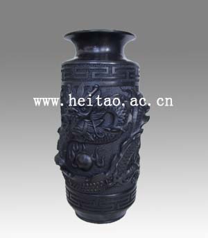 黑陶是指黑光亮器壁较清制作精细的陶器。最早发现于龙山文化。黑陶按质地可分为三种:泥质黑陶、夹砂黑陶、细泥黑陶。黑陶的原料一般都经过精细的淘洗和充分的陈腐,在用陶轮制作时将胎壁做得很薄,有的竟薄如蛋壳。其制法是将陶坯晾到半干程度,用鹅卵石在器壁表面进行打磨,打磨过的陶坯光滑平整,然后放入窑内用1000多度的高温焙烧。在烧窑快结束时再加入一点水,窑内产生大量浓烟对陶器进行熏,浓烟中的炭粒附着于器表,充满胚体的孔隙,呈现漆黑色的颜色,由于陶坯往往经过打磨,故陶器表面漆黑光亮,十分美观黑陶中,尤以蛋壳陶极为珍贵,所谓蛋壳系指其胎薄如蛋壳,多数器物仅厚0.3厘米,个别的仅为0.1厘米。蛋壳陶器主要为高柄杯、突棱杯、乳钉纹等,有的还雕出一排排整齐而美观的镂孔,以为装饰。 |